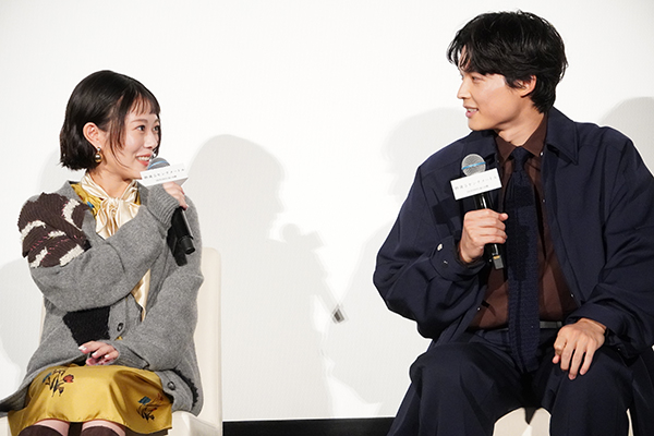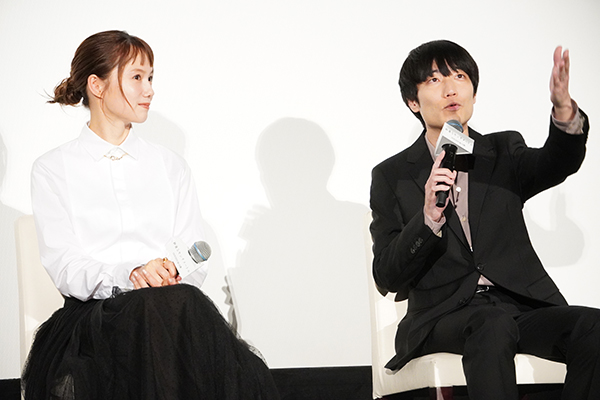 ちょっと不思議な空気感ですね。本作が、切なくて美しい物語だということは、皆さん共通して感じてもらえたと思います。でも、エンディングを迎えた時、これがハッピーエンドなのかどうなのかは、ある意味、皆さんで解釈していくものだと思います。それは、観終わって三十分や一時間で結論を出せるものじゃないと、感じています。なので、会場の皆さんが「じっくり一人で考えたい」と思っているような顔にも見えています。それだけ皆さんが真摯に本作を受け止めてくれたんだと、すごくうれしいです。