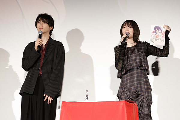 (プレゼントを披露する観客を見つけて)ありがとうございます! 声優アワードの時に戸谷さんと二人でお写真を撮ったんですが、二人の後ろに映っているお花がこのレゼが持っている花束とちょっと似ていたんです。『チェンソーマン』公式Xでも写真を上げていただいているので、ぜひ見てください。何だかエモーショナルな気持ちになりました。