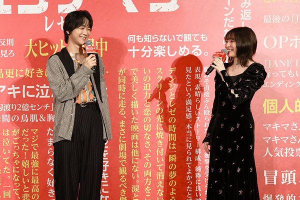 多かったのは、(パネルを示して)こちらにもありますが、「レゼに堕ちました。」です。「レゼがかわいくて、最後が切ない」という声が多かったと思います。皆さんに観ていただけて、そういう感想が多くなっているのかなと思います。