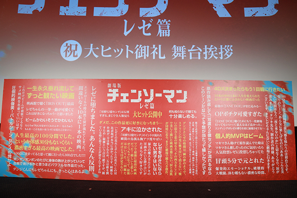 劇場版『チェンソーマンレゼ篇』大ヒット御礼舞台挨拶