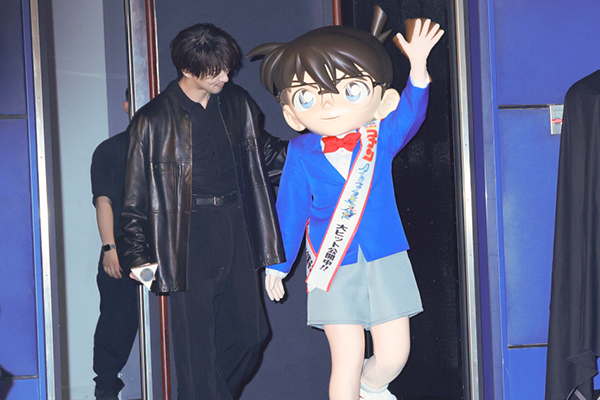 ■横浜流星さんと江戸川コナンくんが揃って登場し、コナンくんはそのまま他のキャストの皆さんをお出迎えしました。