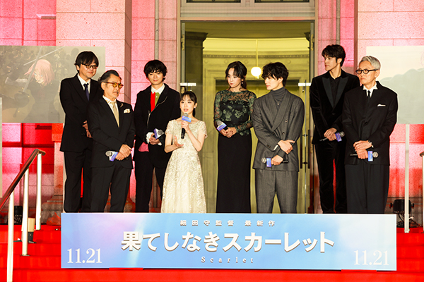 皆さん、こんばんは。本日は細田守監督の最新作「果てしなきスカーレット」のジャパンプレミアにお越しいただき誠にありがとうございます。日本の皆さんに作品の初お披露目となります。