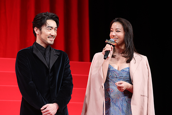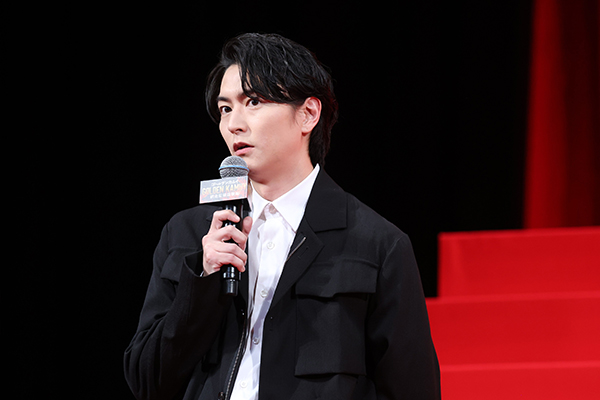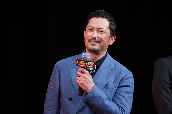 本日は、お越しいただきありがとうございます。前作、そしてドラマシリーズに引き続き、こうしてアシㇼパを再び演じることができてとてもうれしいです。出来上がった本編は、とても面白かったです。皆さんにも楽しんでいただけると良いなと思います。