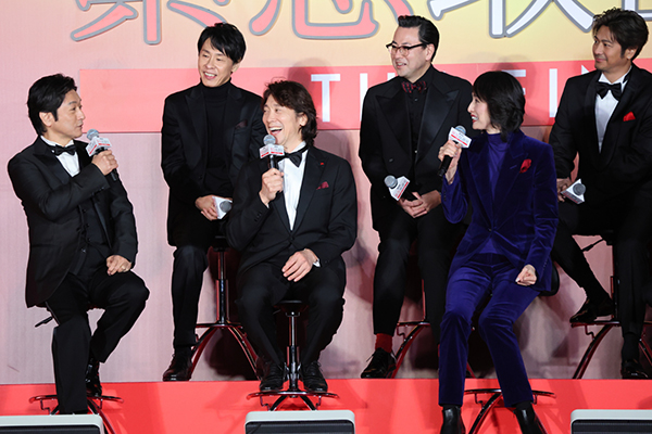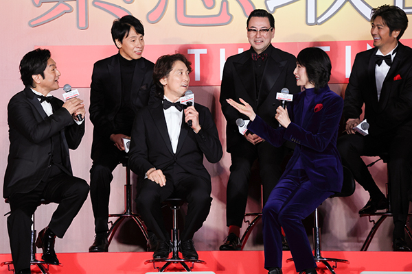 どうも、こんばんは。こんなに寒い中、今日はたくさん集まっていただいてありがとうございます。このメンバーで、こうやってタキシードを着て、…実は三年前にも一度こういう機会があったんですが、またこうやってタキシードを着て集まることができて、本当にいろいろなことがありましたが、今は幸せな気持ちでいっぱいです。連続ドラマのシーズンは終わりましたが、何と言っても映画がいよいよ26日から始まります。皆さんぜひご覧になってください。本日はゆっくり楽しんでください。ありがとうございます。