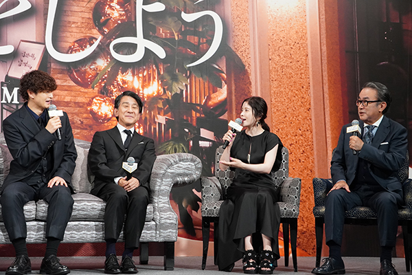 最初に十勝左衛門役をいただいた時は、すごい名前だなと思いました。(登壇者の皆さん:笑) 衣装合わせの時に、三谷さんと初めてお会いして、「よろしくお願いします」とご挨拶しました。この十勝という人物は、自信をスーツにして身にまとったような男です。他の夫たちに対していろいろなマウントを取りながら、ポンポンポンと会話に入っていくような役柄でした。あまり演じたことのない役だったので、三谷さんからこういった役をいただけて本当にうれしかったです。撮影期間中も、三谷さんの演出がすごく楽しくて、現場では終始、笑いながら皆さんと良い時間を過ごすことができました。作品自体にもその空気感がちゃんと反映されていて、スクリーンから観客の皆さんへ伝わるような、ものすごく面白い作品になっています。ぜひ皆さん、これからより多くの人に広げていただけると助かります。